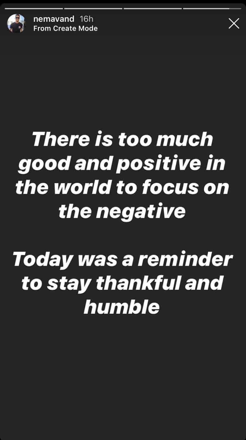 “There is too much good and positive in the world to focus on the negative,” he wrote. “Today was a reminder to stay thankful and humble.”