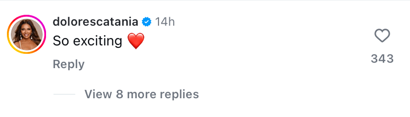 Naturally, some of Rachel’s cast members celebrated the announcement online. Dolores Catania left kind words, writing, “So exciting,” along with a heart emoji.