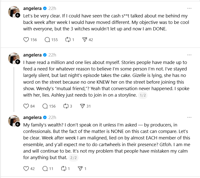 On Threads, Angel clapped back at Gizelle, Wendy, and Ashley’s allegations.