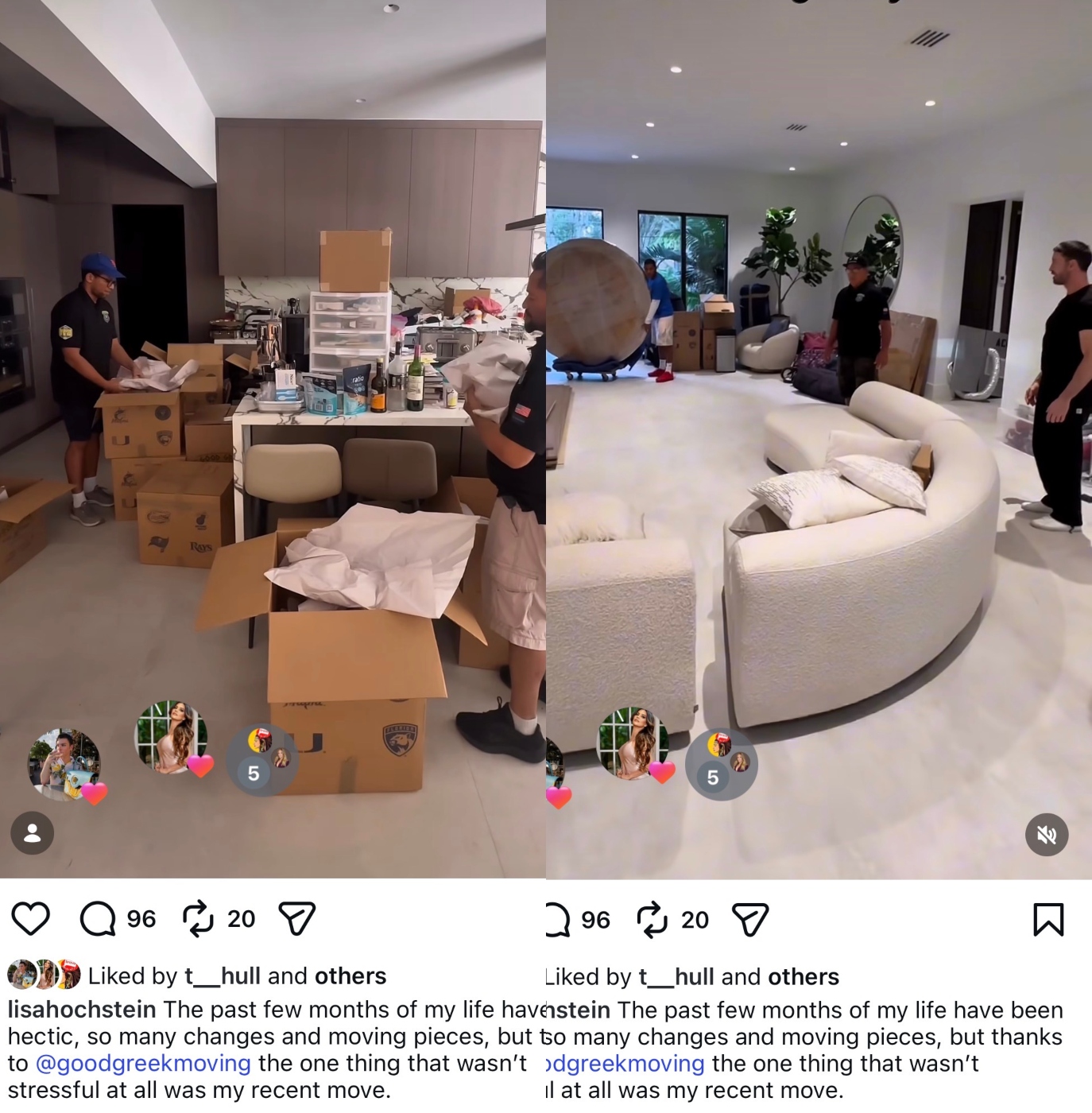 “The past few months of my life have been hectic, so many changes and moving pieces, but thanks to [Good Greek Moving and Storage] the one thing that wasn’t stressful at all was my recent move,” Lisa wrote in the caption of her February 2 post.