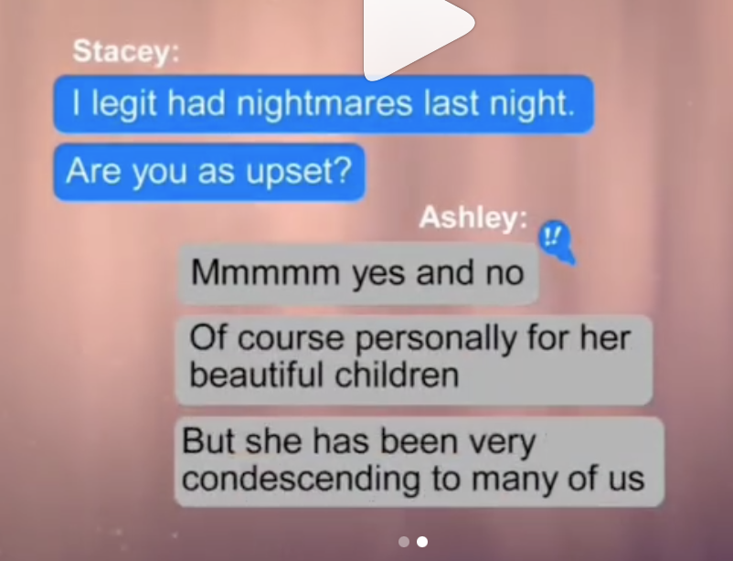 Ashley answered, “Mmmmm yes and no. … Of course personally for her beautiful children — But she has been very condescending to many of us.”