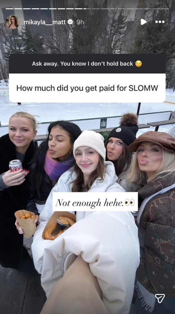 In another post, Mikayla was asked how much she was paid on the show.