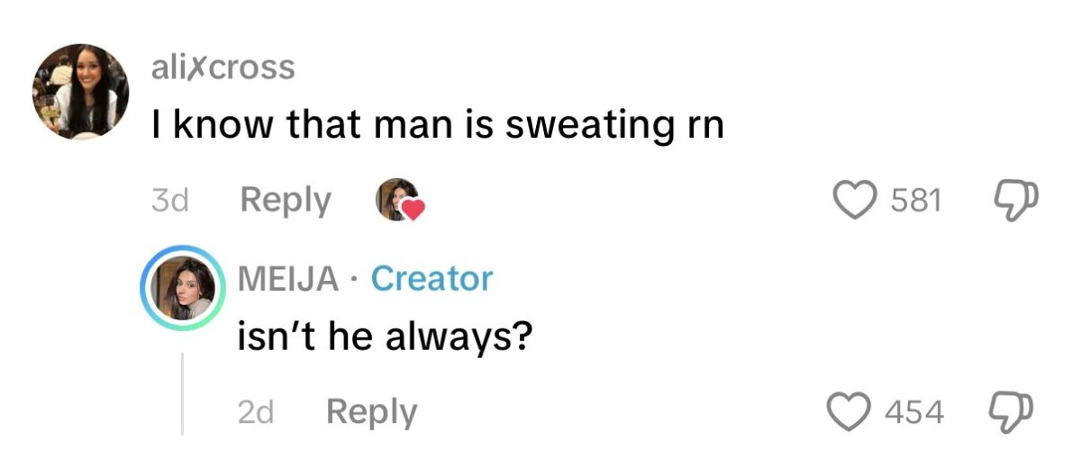 “I know that man is sweating rn,” someone wrote on her Instagram.