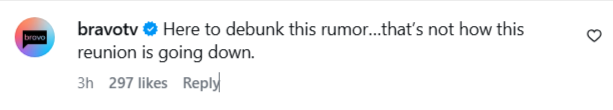 The network took to the comments section of a post made by the Comments by Bravo Instagram page to shut down the claims of separating the cast at the reunion.