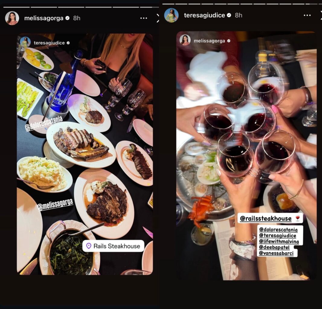 Teresa Giudice shared a photo of food at Rails Steakhouse, where the finale for season 14 was filmed, as well as the follow-up special. She tagged Melissa Gorga and Dolores Catania.