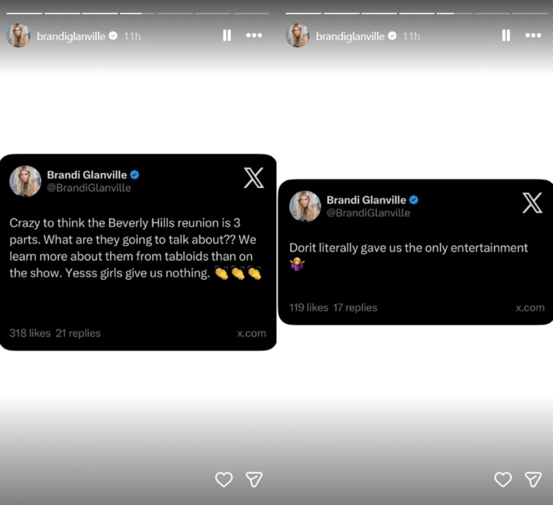 “Crazy to think the Beverly Hills reunion is 3 parts, What are they going to talk about??” she asked on X. “We learn more about them from tabloids than on the show. [These] girls give us nothing. … Dorit literally gave us the only entertainment.”